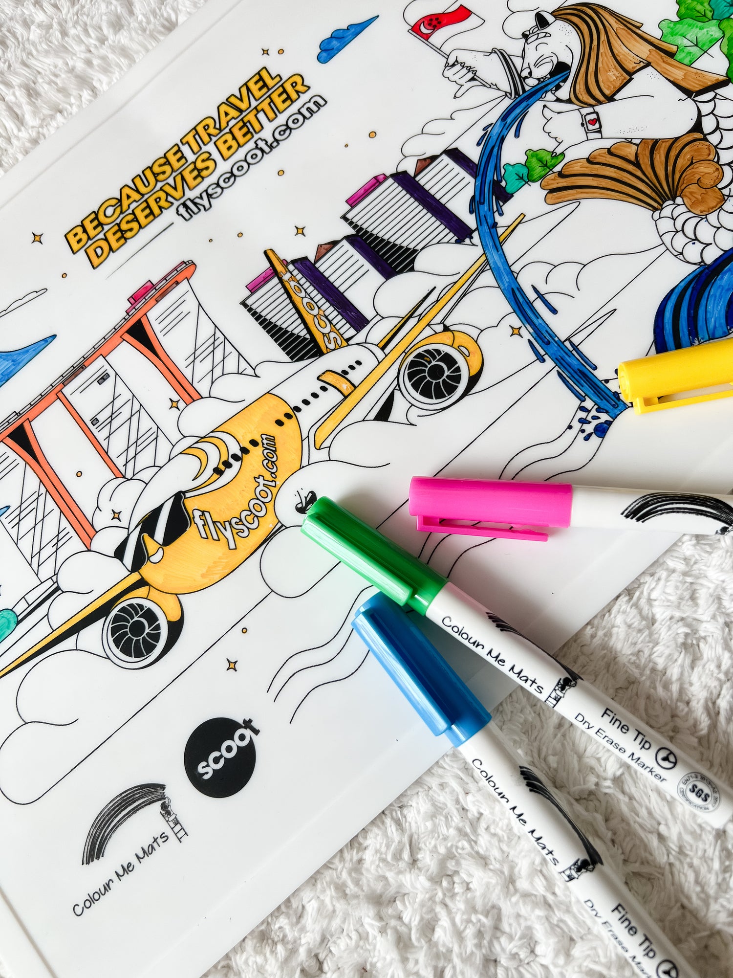 Because travel deserves better, so should the experience of flying for our young travellers! Scoot to your next adventure with the Singapore Edition colouring mat for a fun time onboard.